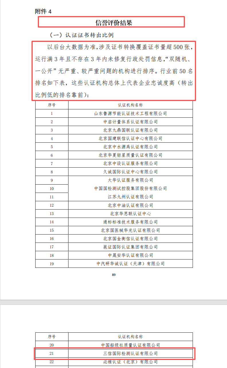 信誉是认证机构的核心资产。在“信誉评价结果”的“认证证书转出比例”测评中,主办方聚焦“证书量超500张、运营满3年、无不良记录”的优质机构,而证书转出比例低则意味着企业客户忠诚度高。三信国际认证的排名前50,印证了市场对其服务质量与公信力的高度认可,也彰显了企业长期主义的经营智慧——唯有以信任为纽带,才能与客户实现共赢发展。