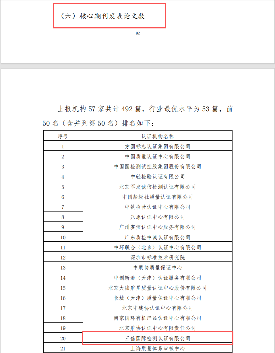 学术研究是专业能力的核心延伸。在“核心期刊发表论文数”指标中,全国57家上报机构共计发表492篇论文,行业最优水平达53篇,三信国际认证再次跻身前50行列。通过在核心学术平台分享实践成果与研究心得,企业不仅实现了自我技术迭代,更为行业标准完善贡献了智慧力量。
