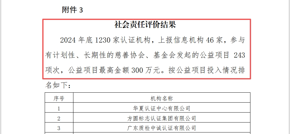 企业的价值,不止于商业成就,更在于社会贡献。2024年底,全国1230家认证机构中仅有46家上报社会责任信息,共参与243项次计划性、长期性公益项目,最高单项投入达300万元。三信国际认证凭借持续的公益投入和扎实的责任实践,在社会责任评价中稳居全国前50,用实际行动践行“企业公民”的使命担当,让认证服务与社会价值同频共振。